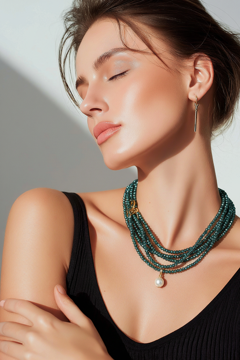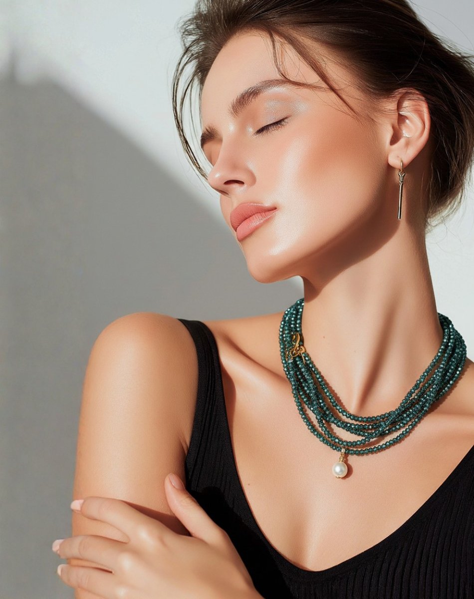 שרשרת קריסטלים ארוכה ופנינה