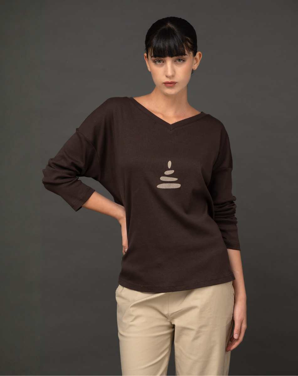 חולצת ג׳מה תחרה חומה