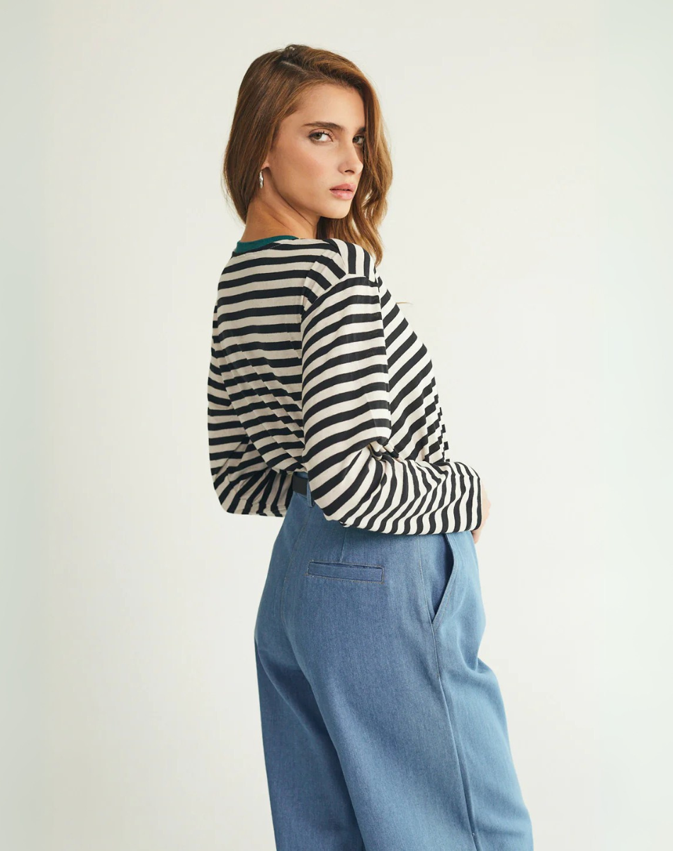 טי מושלמת ארוכה פסים שחור לבן
