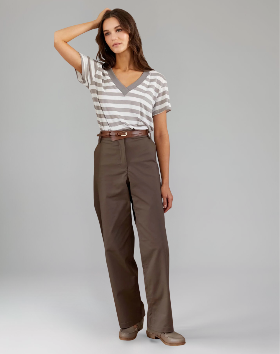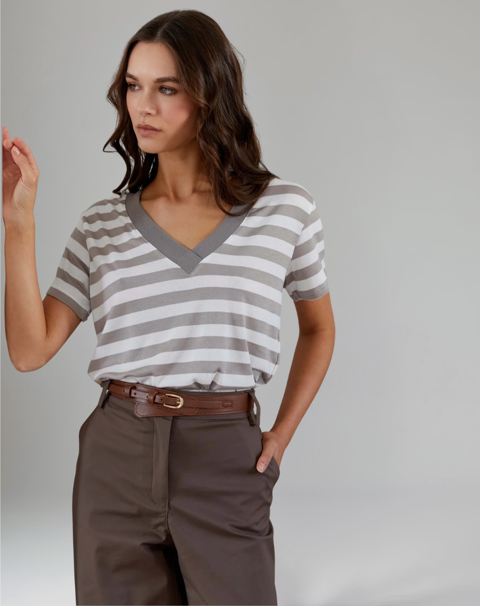חולצת לוסי פסים ירוק זית לבן