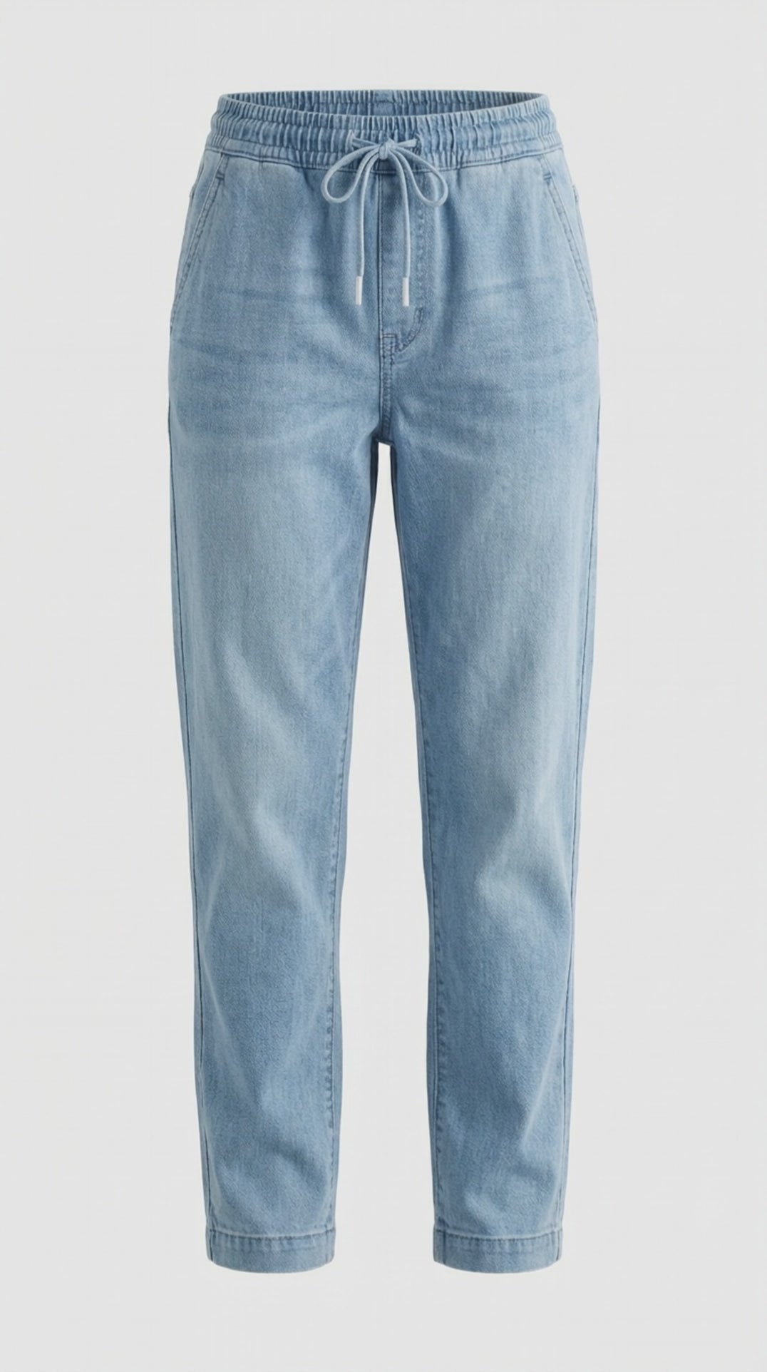 ג’ינס בהיר בגוון תכלת רך עם גומי במותן ושרוך קשירה קדמי, בגזרה משוחררת ורפויה על הגוף. הבד נופל ברכות לאורך הרגל ויוצר מראה נינוח וטבעי, עם מפתח רגל רחב שמעניק תחושת קלילות ותנועה. עיצוב נקי עם כיסים קדמיים נוחים, מושלם למראה יומיומי נינוח ואלגנטי.