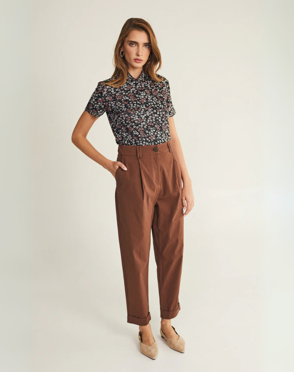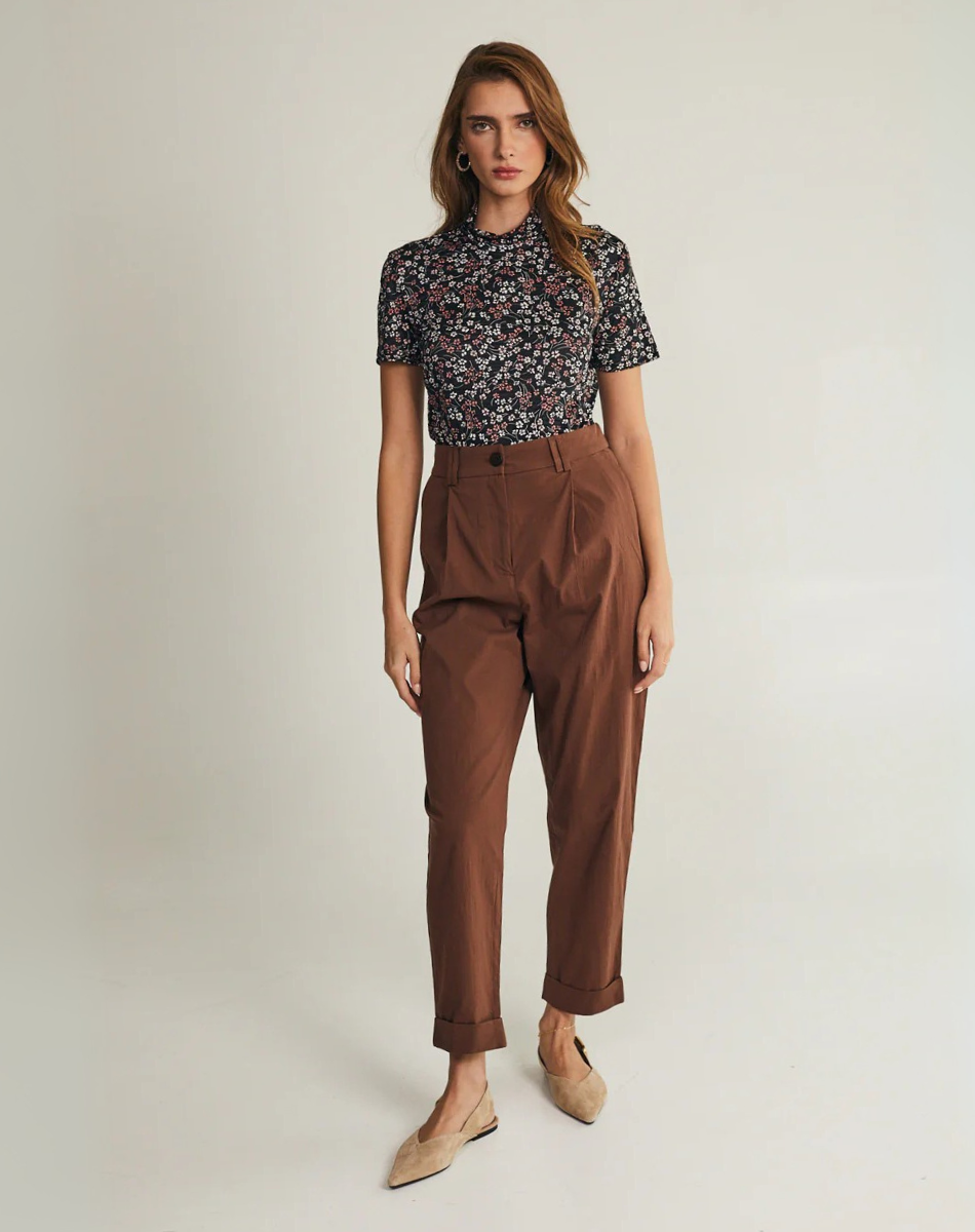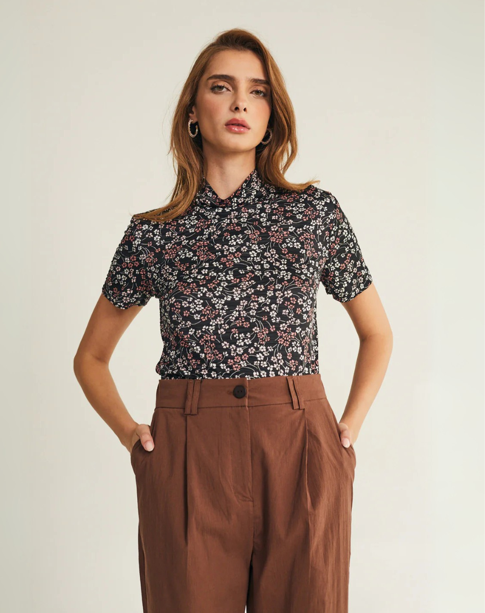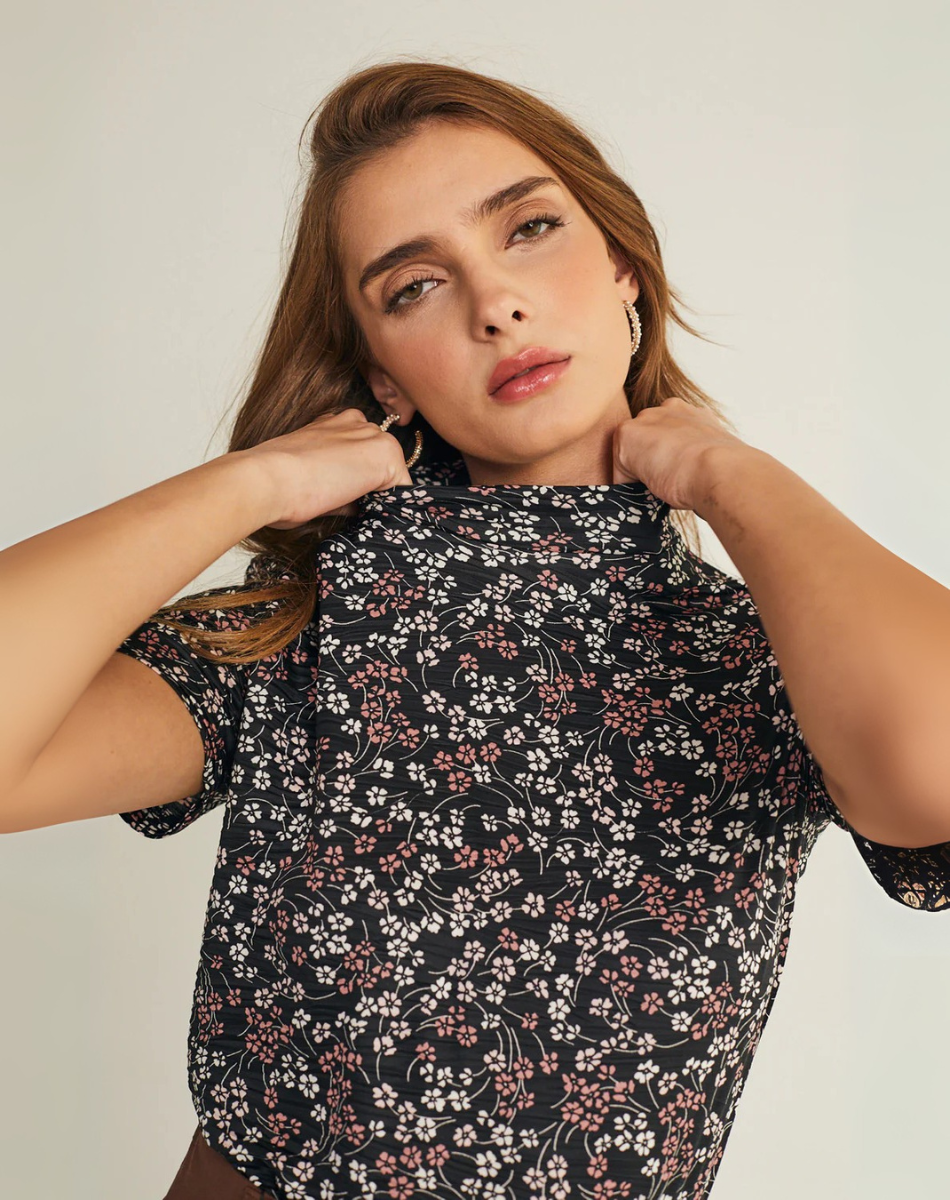 חולצת גולף דקה קצרה מבד סטרצ׳י עם טקסטורה. חולצת בייסיק מחמיאה בדיוק לעונת המעבר. גזרה צמודה עם שרוולים קצרים וצווארון גולף.