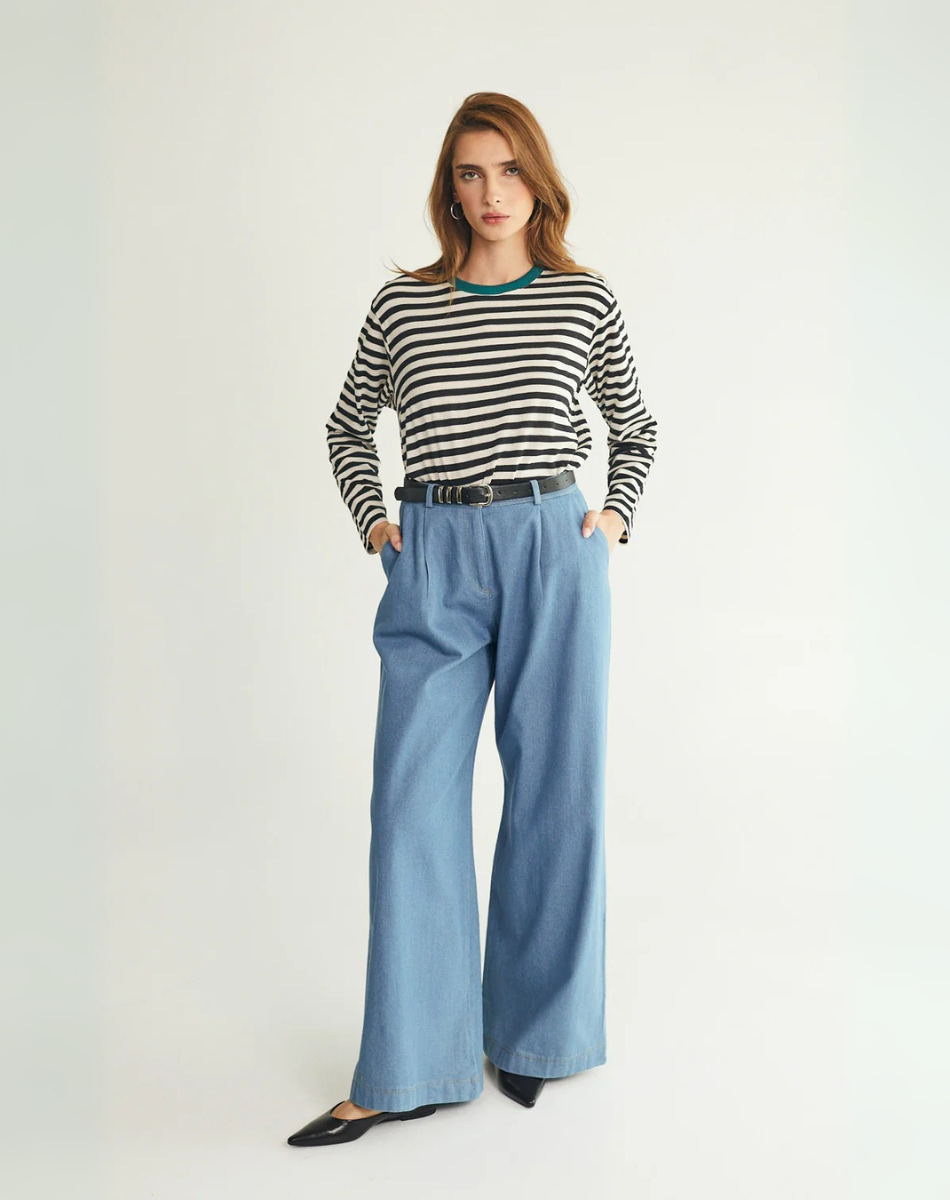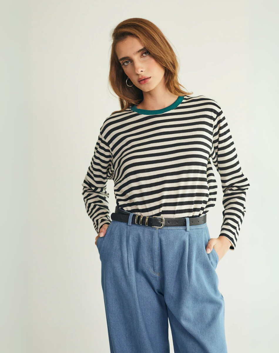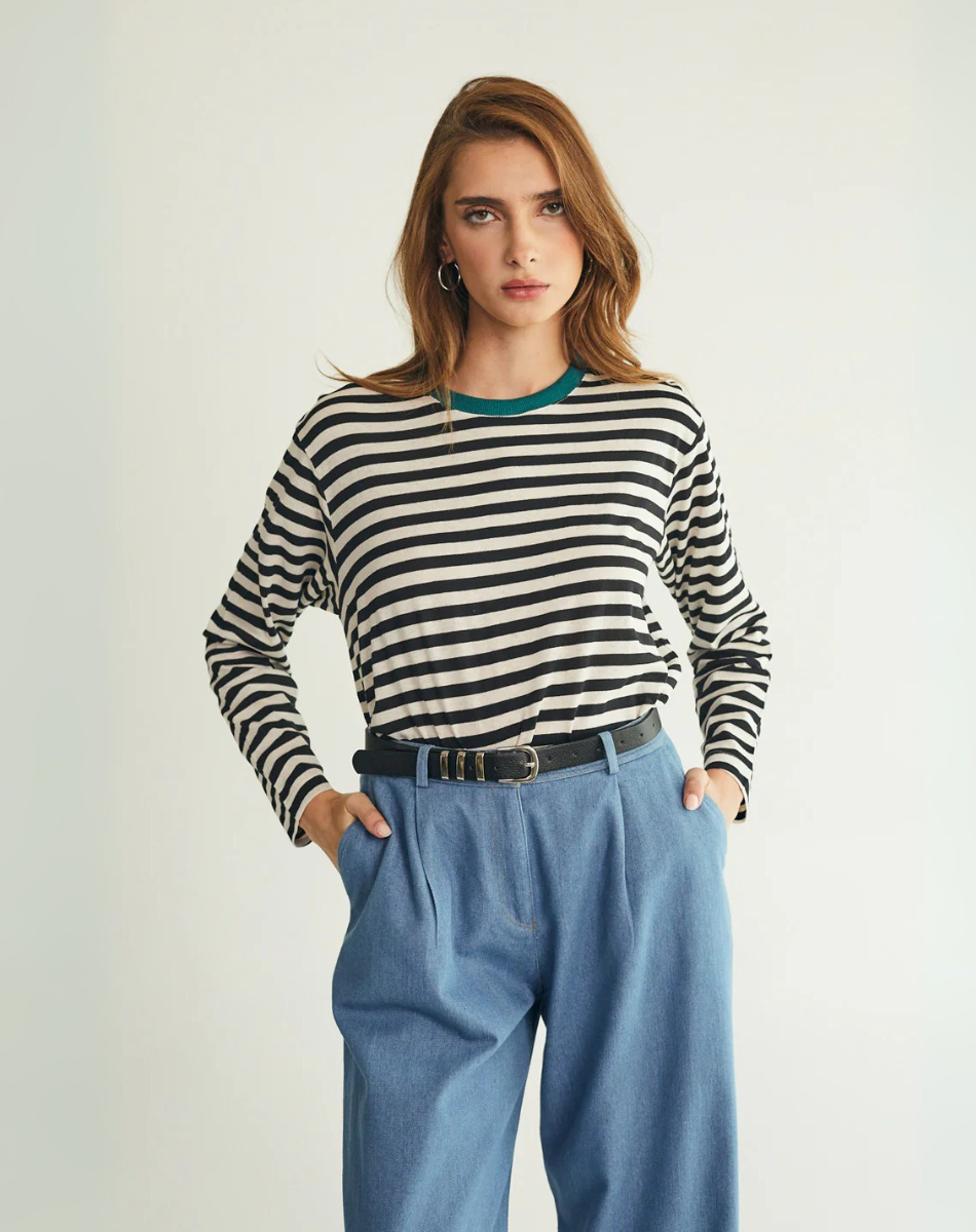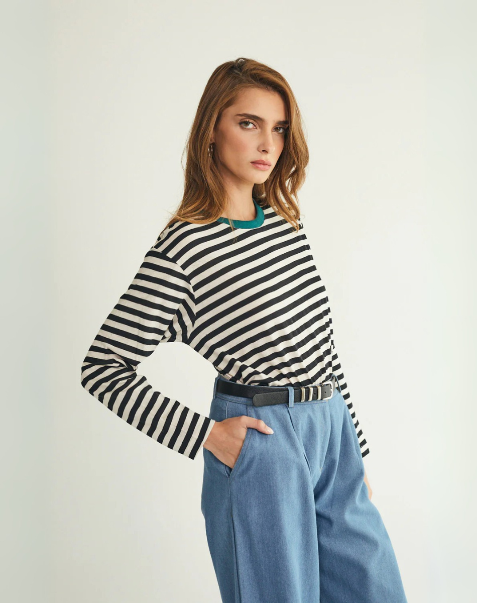 טי מושלמת ארוכה פסים שחור לבן