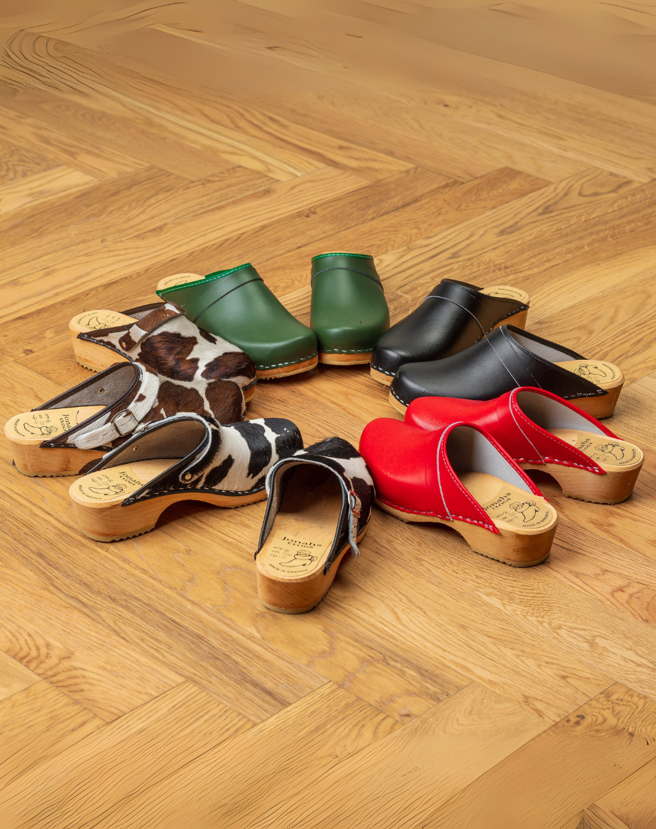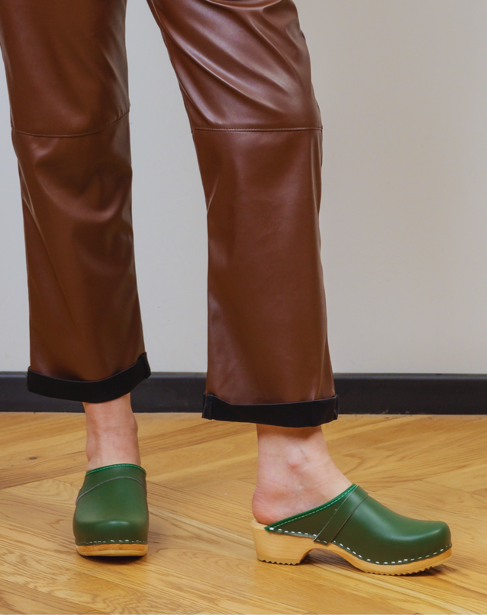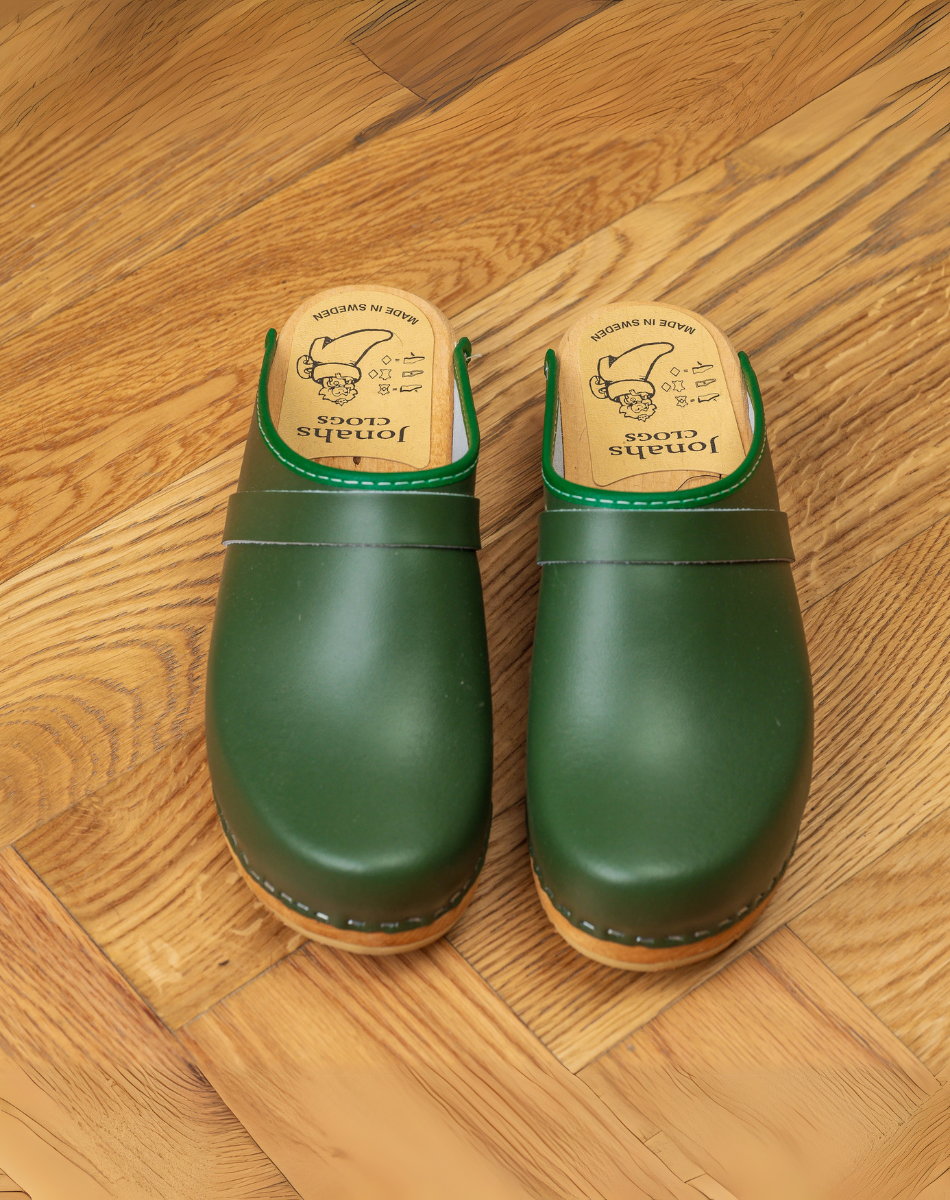 כפכפי עץ בעיצוב שוודי קלאסי בצבע ירוק. ביטנה מרופדת מעט מבפנים. כפכף שמתאים לכל מצב ויום.