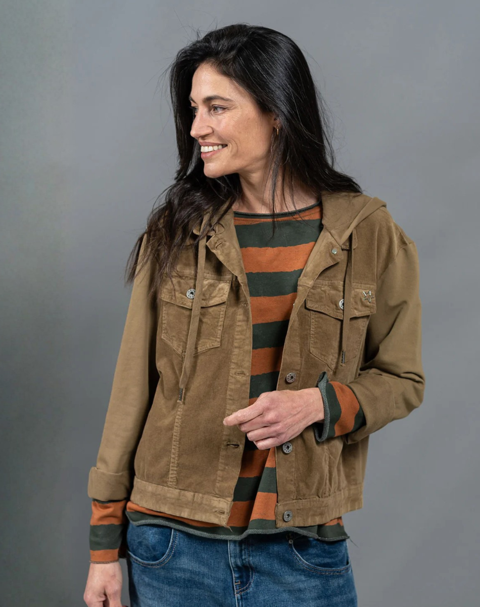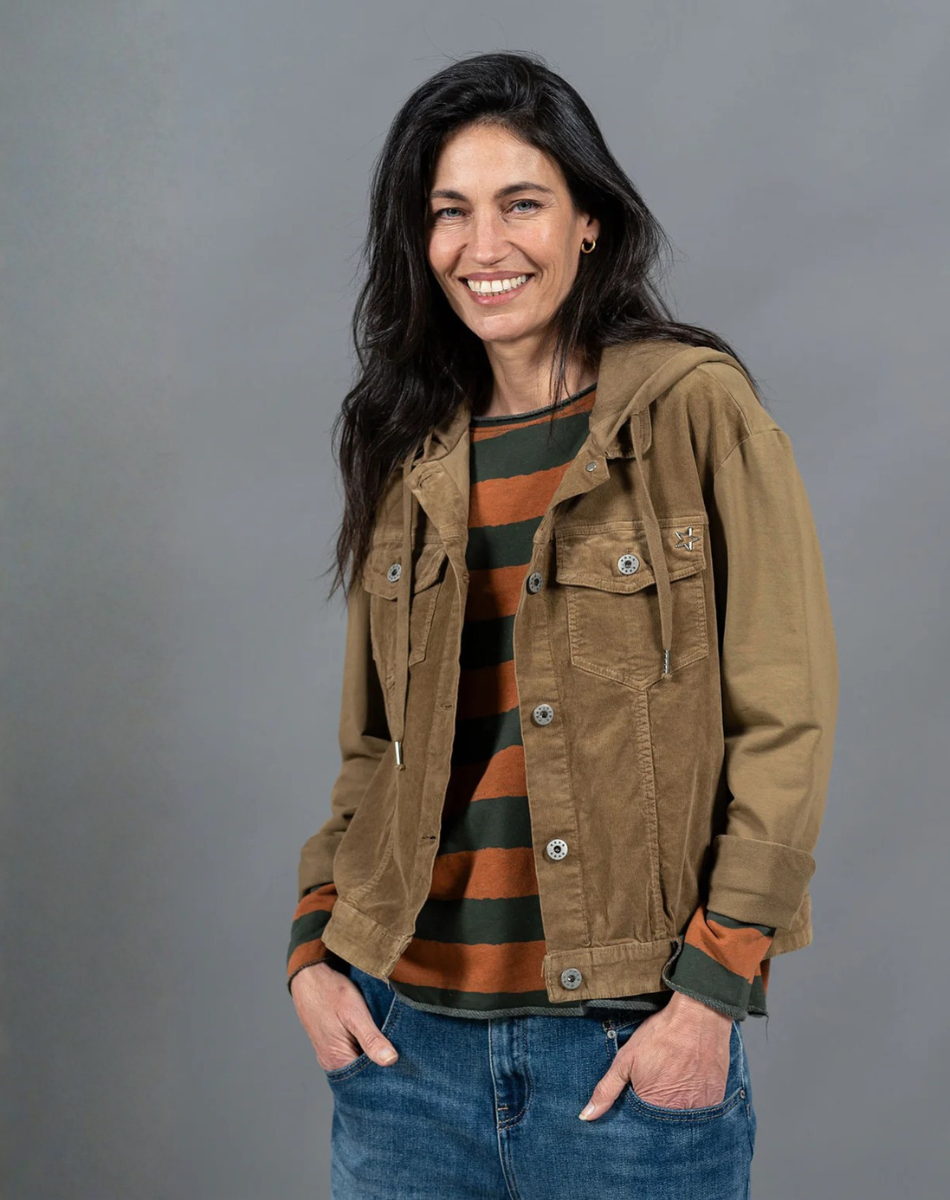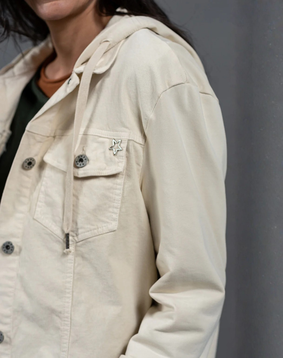 מחיר מקורי ₪455.00ג'קט חתיכי בהשראת ג'קט ג'ינס, בשילוב בדים מנצח ומהמם של קורדרוי ופרנץ' טרי . מראה עשיר של חומר וצבע עם קפוצ'ון ושרוכים למראה אורבני עדכני. כפתורים מעוצבים שמוסיפים נגיעה ייחודית וסיכת כוכב אהובה שמשלימה את המראה הכללי. סטייל שאי אפשר לפספס.