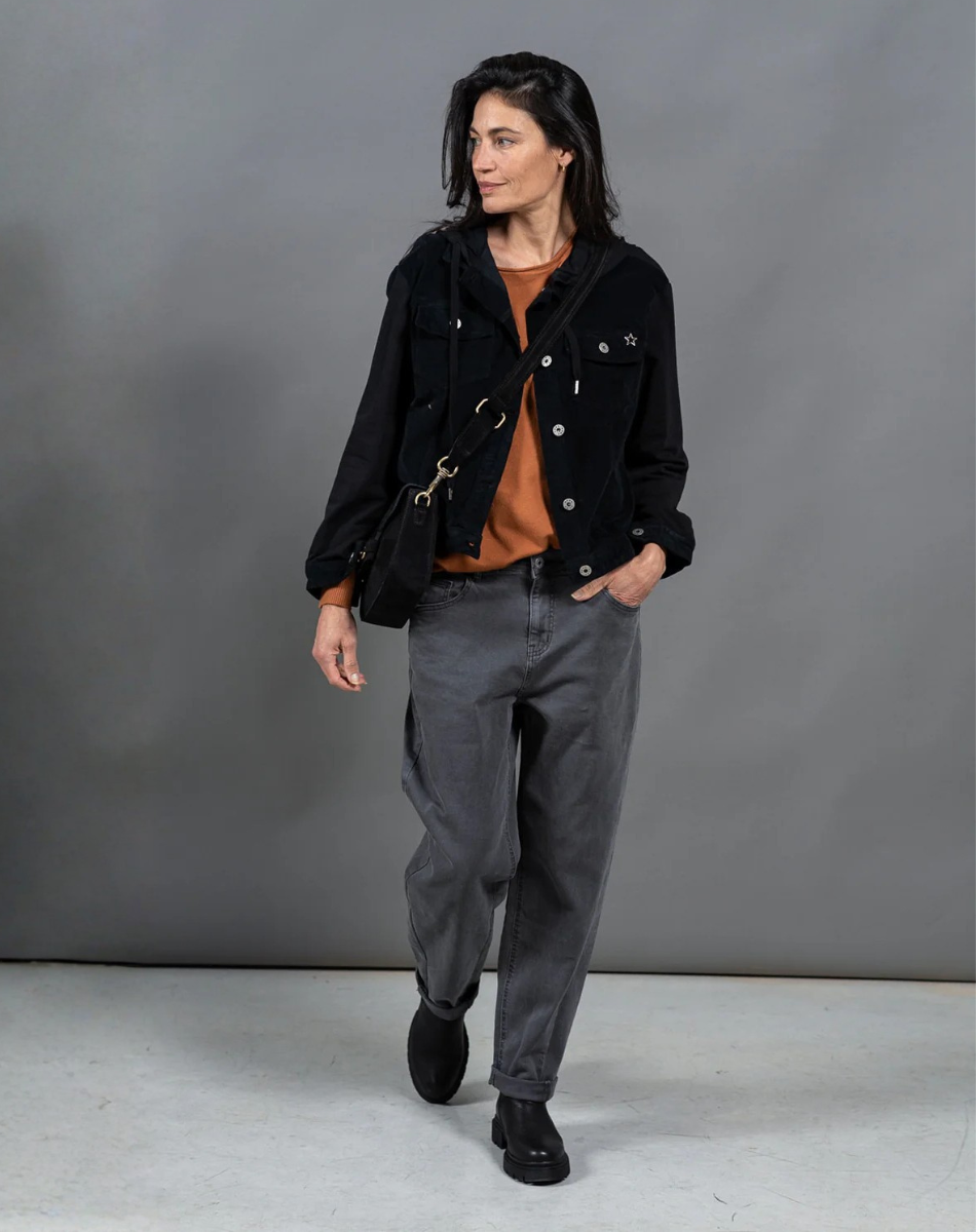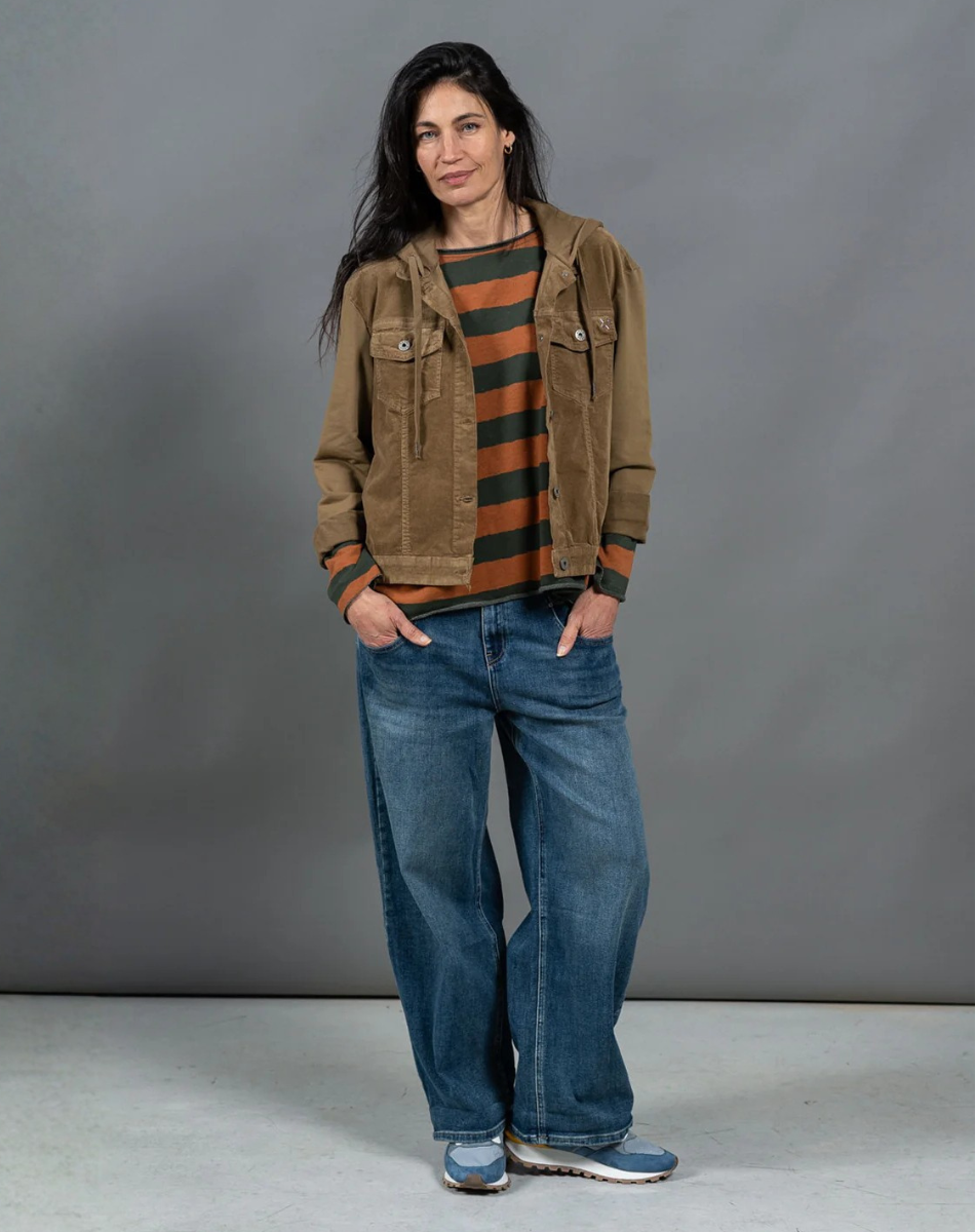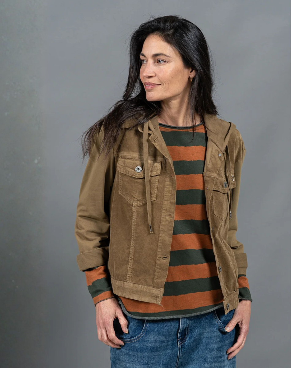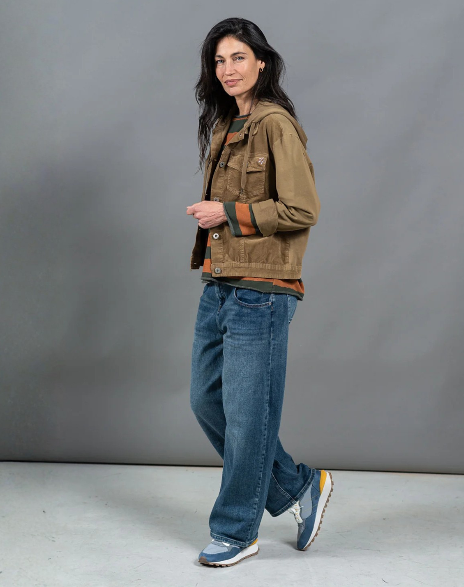 מחיר מקורי ₪455.00ג'קט חתיכי בהשראת ג'קט ג'ינס, בשילוב בדים מנצח ומהמם של קורדרוי ופרנץ' טרי . מראה עשיר של חומר וצבע עם קפוצ'ון ושרוכים למראה אורבני עדכני. כפתורים מעוצבים שמוסיפים נגיעה ייחודית וסיכת כוכב אהובה שמשלימה את המראה הכללי. סטייל שאי אפשר לפספס.