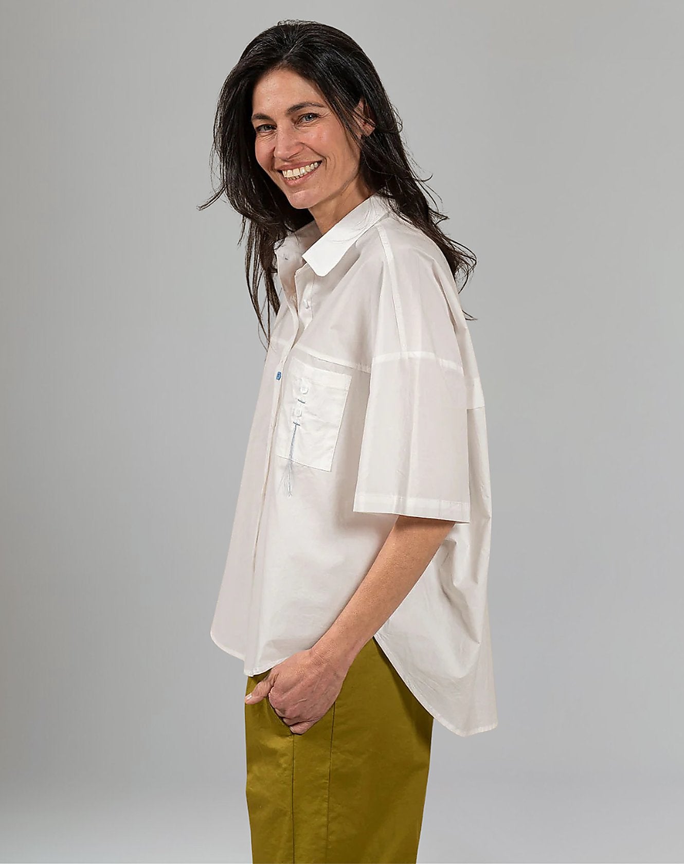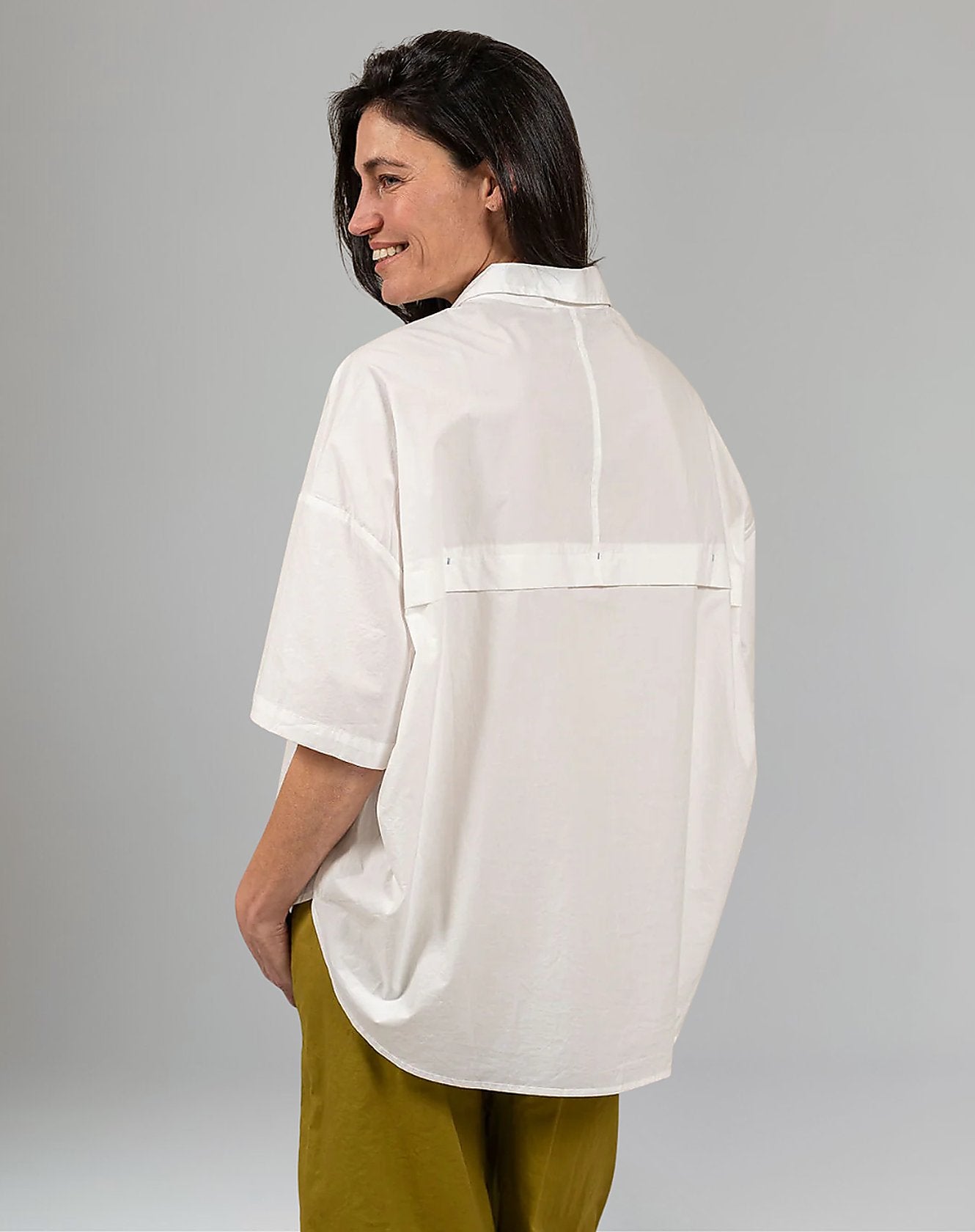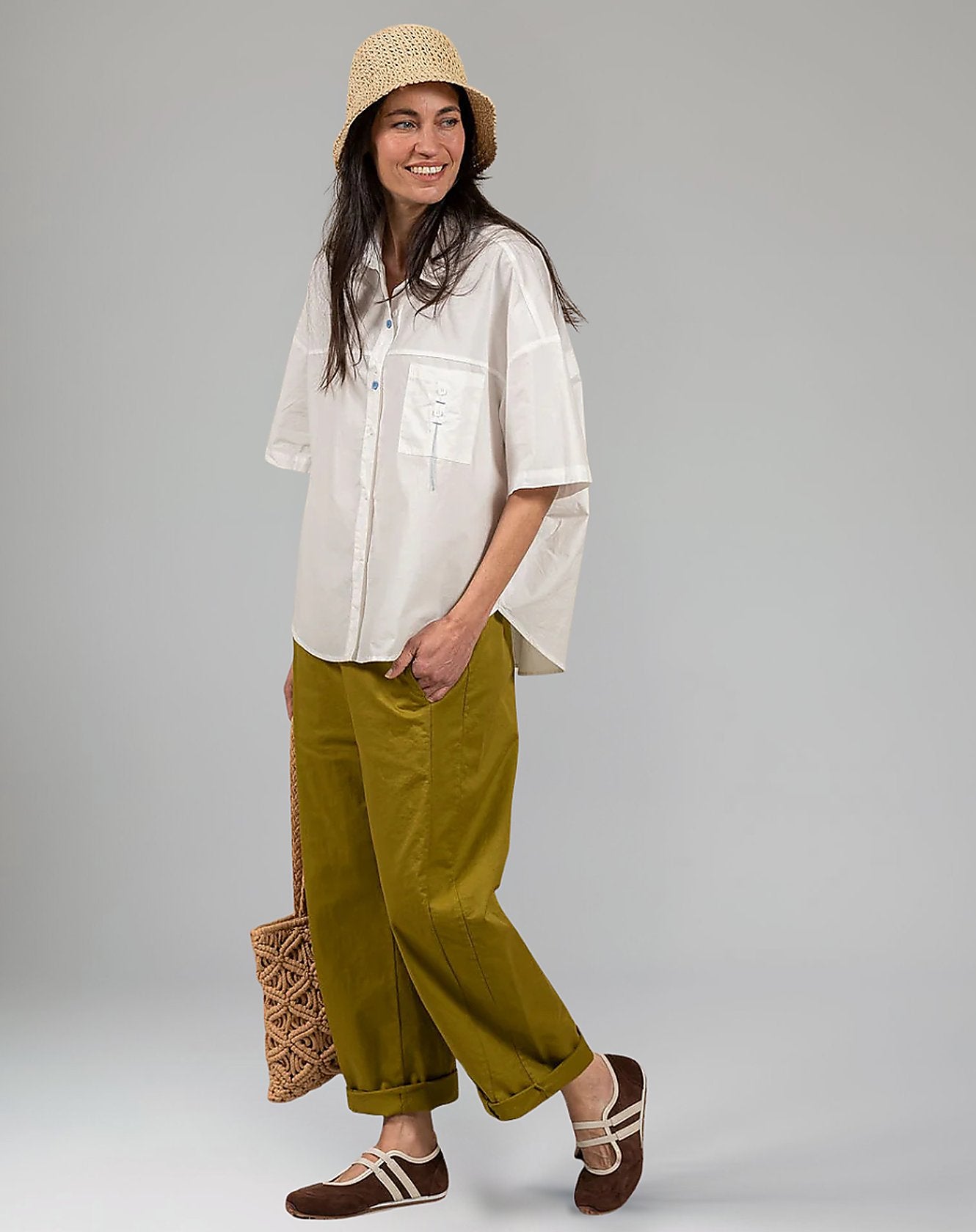 בד כותנה אוורירי עם נוכחות, שומר על קו יציב בלי להכביד.