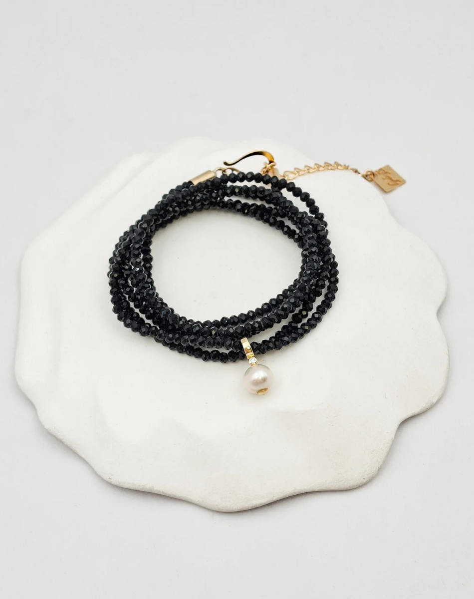 מחרוזת קריסטלים ארוכה ומקסימה בגווני כחול אפרפר ושחור, לבחירתך. עם תליון משובץ זירקון קטנטן ותחתיו פנינה אמיתית. הפריט מגיע ארוז למתנה ועם אחריות לשנה. האלמנטים בשרשרת בציפוי ישראלי איכותי והיפואלרגני של זהב 24 קראט.