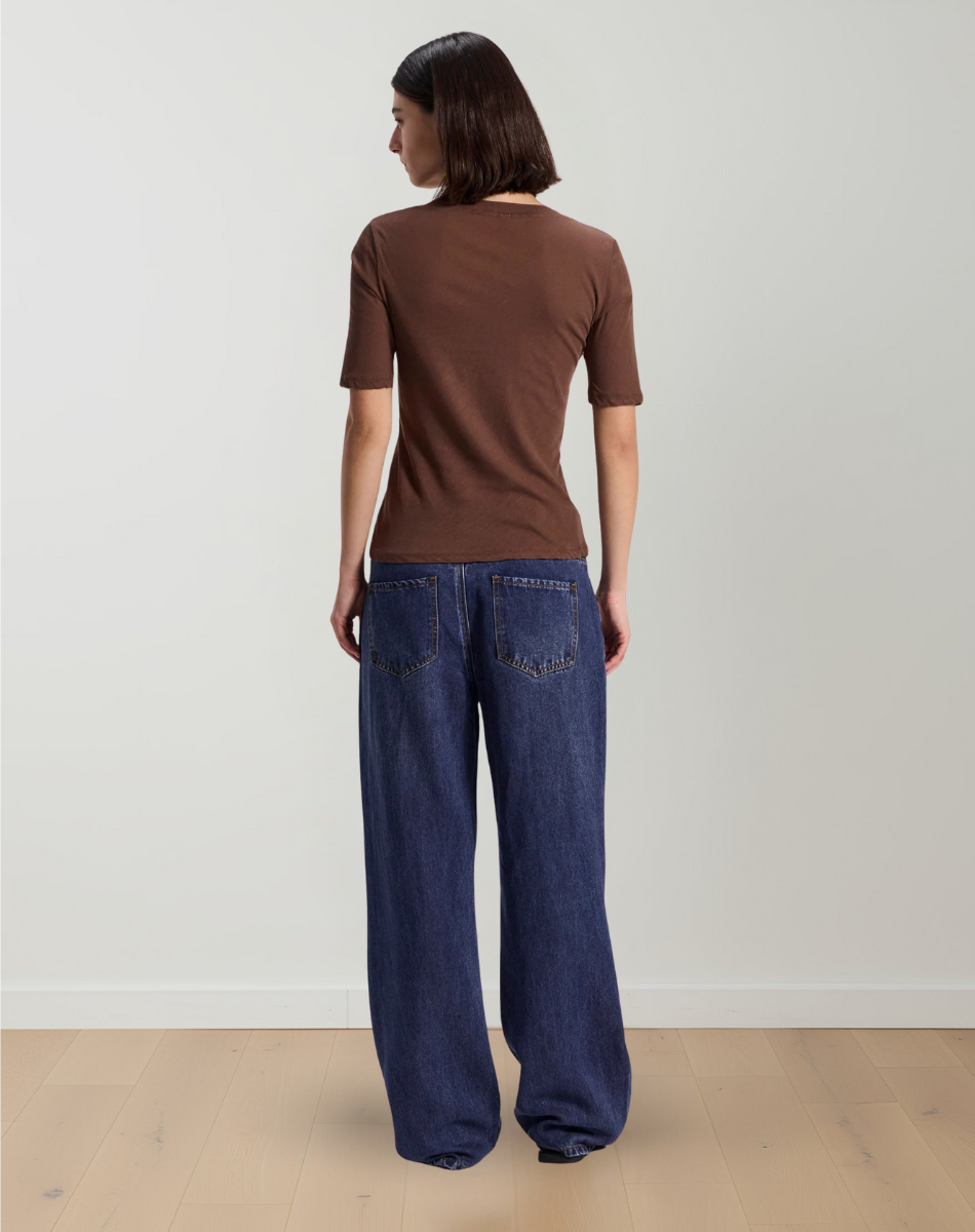 מכנסיים ארוכים בגזרה ישרה ורכה עם נפילה טבעית לאורך הרגל. הבד בעל מרקם עדין ומעט מחוספס למראה, יוצר תחושה נינוחה ולא מתאמצת. החלק העליון מעוצב בקו מותניים נקי עם סגירה קדמית בכפתור, וקפלים עדינים שמוסיפים רוחב ותנועה. הגזרה משוחררת אך מסודרת, מתאימה ללבישה יומיומית ומאפשרת נוחות לאורך היום.